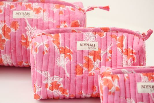 Gorgeous flowery fabric pattern. The pouches come in 3 different sizes and are very spacious. My daughter was amazed by the brilliant packaging. It was like opening presents. My order was shipped and received on time. I would definitely recommend this store to my family and friends and will continue to support small businesses as this one. Thank you, MynahbySmitha.